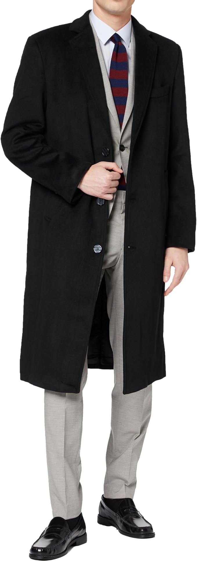 Mens Black Overcoat Wool & Cashmere Warm Winter Mod Coat Black Lining Jacket