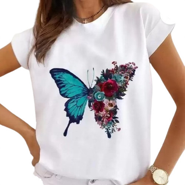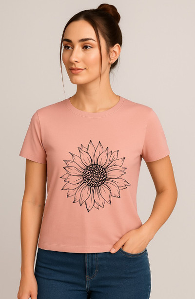 Women Graphic Print Round Neck Polyester Pink T-Shirt