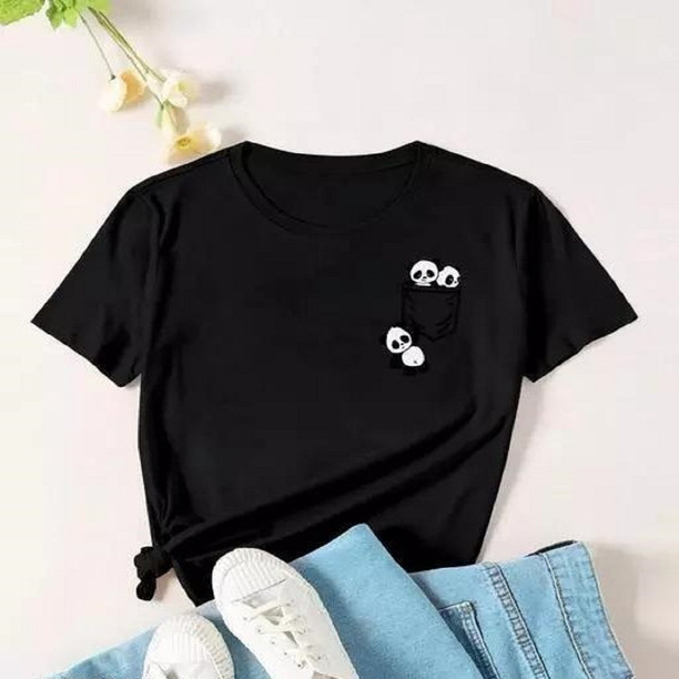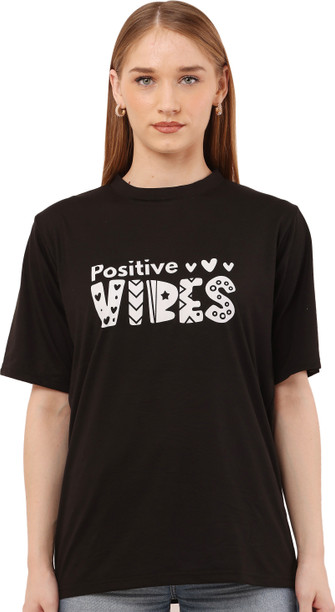 Women Printed Round Neck Cotton Blend Black T-Shirt