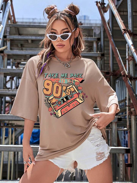 Women Graphic Print Round Neck Pure Cotton Beige T-Shir...