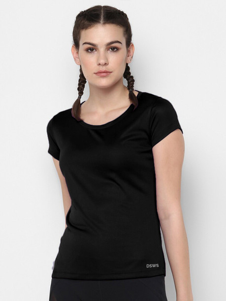Women Printed Round Neck Cotton Blend Black T-Shirt