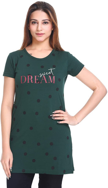 Women Printed Round Neck Cotton Blend Green T-Shirt