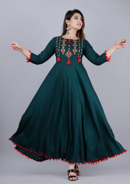 Women Embroidered Viscose Rayon Anarkali Kurta