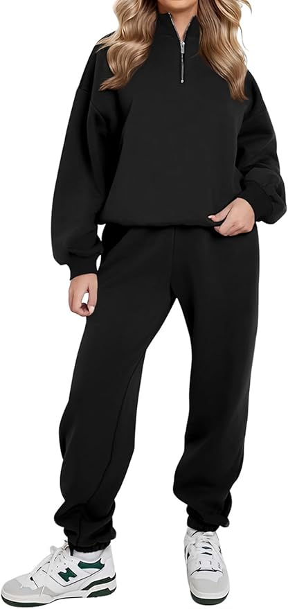 Women's 2 Piece Long Sleeve Tracksuit Loungewear Set Plus Size Crew Neck Sweatshirt and Drawstring Baggy Jogger Pant