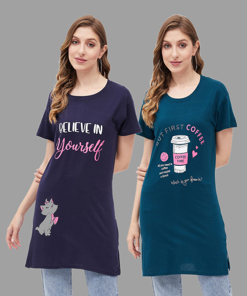 Pack of 2 Women Typography, Striped Round Neck Pure Cot...