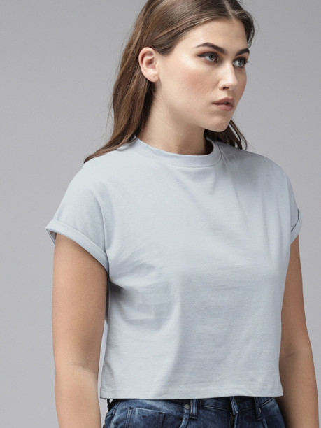 Women Solid Round Neck Pure Cotton Blue T-Shirt