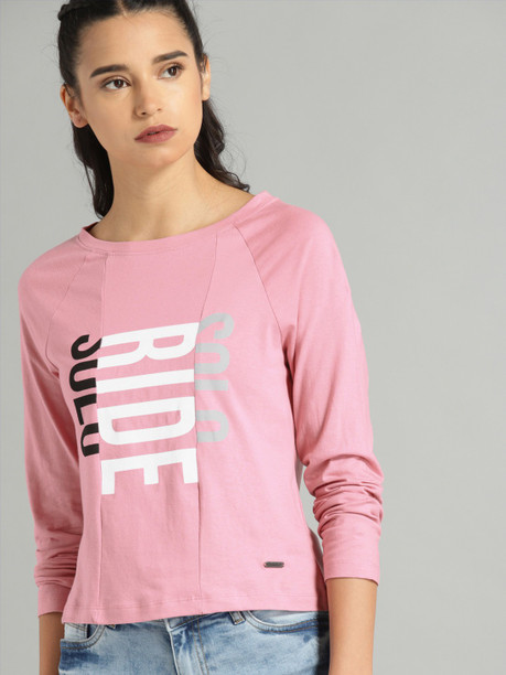 Women Typography Round Neck Pure Cotton Pink T-Shirt