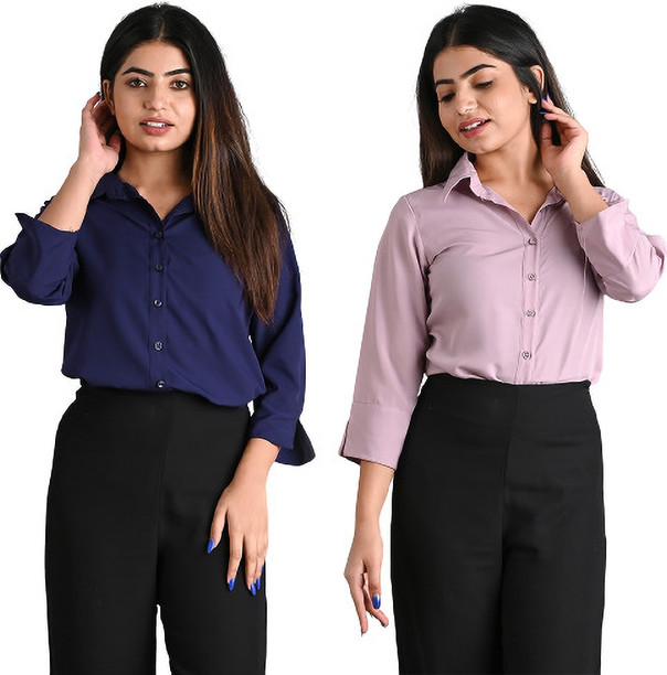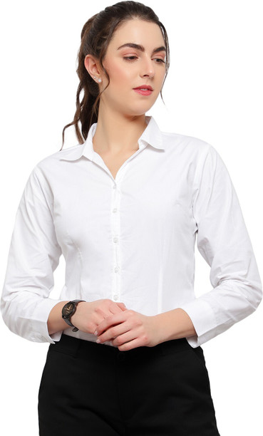 Women Regular Fit Solid Button Down Collar Formal Shirt