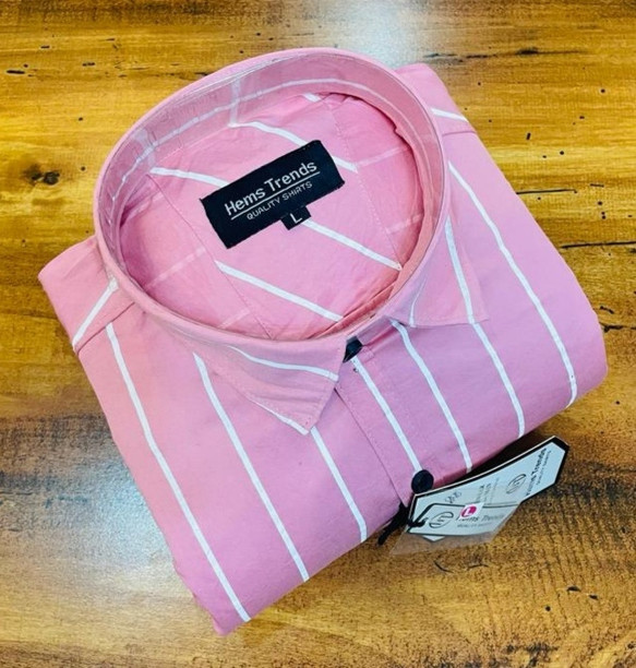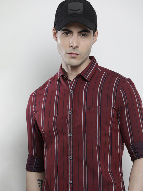 Men Regular Fit Striped Button Down Collar Casual Shirt