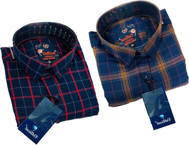 Men Regular Fit Checkered Spread Collar Casual Shirt