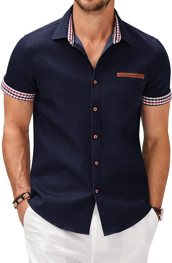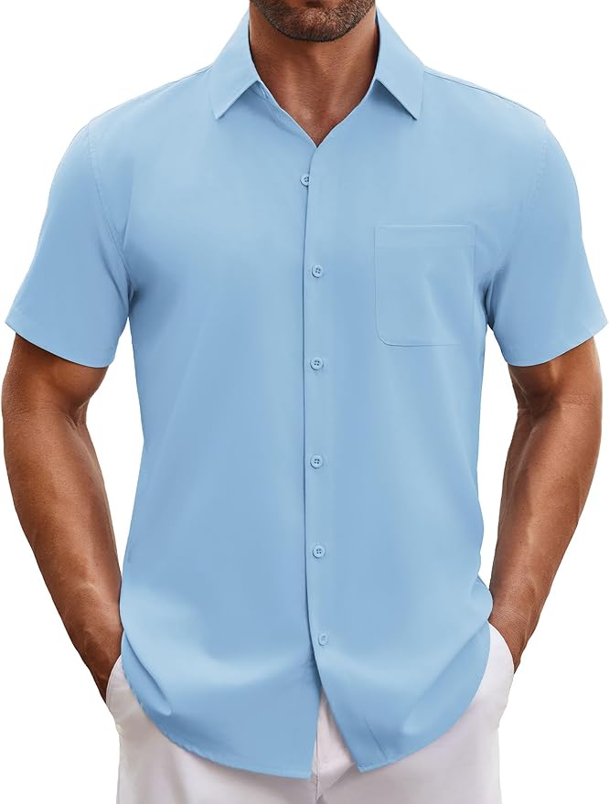 Mens Short Sleeve Button Down Shirts Casual Dress Shirt