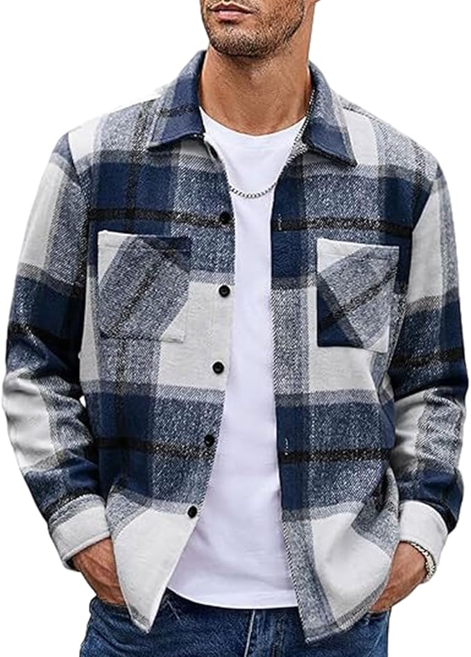 Men's Long Sleeve Quilted Lined Flannel Shirt Jacket with Hood