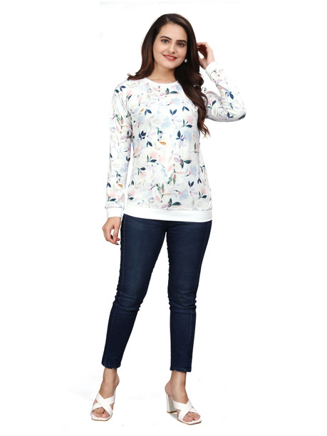 Women Printed Round Neck Cotton Blend White T-Shirt