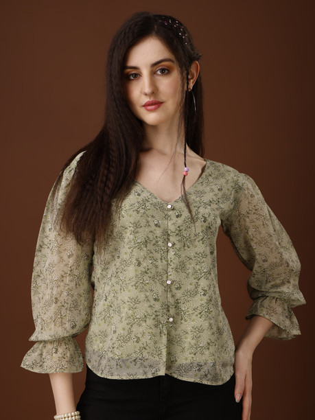 Women Printed Round Neck Cotton Blend Green T-Shirt