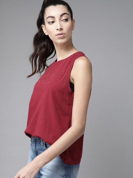 Women Embroidered Round Neck Pure Cotton Maroon T-Shirt