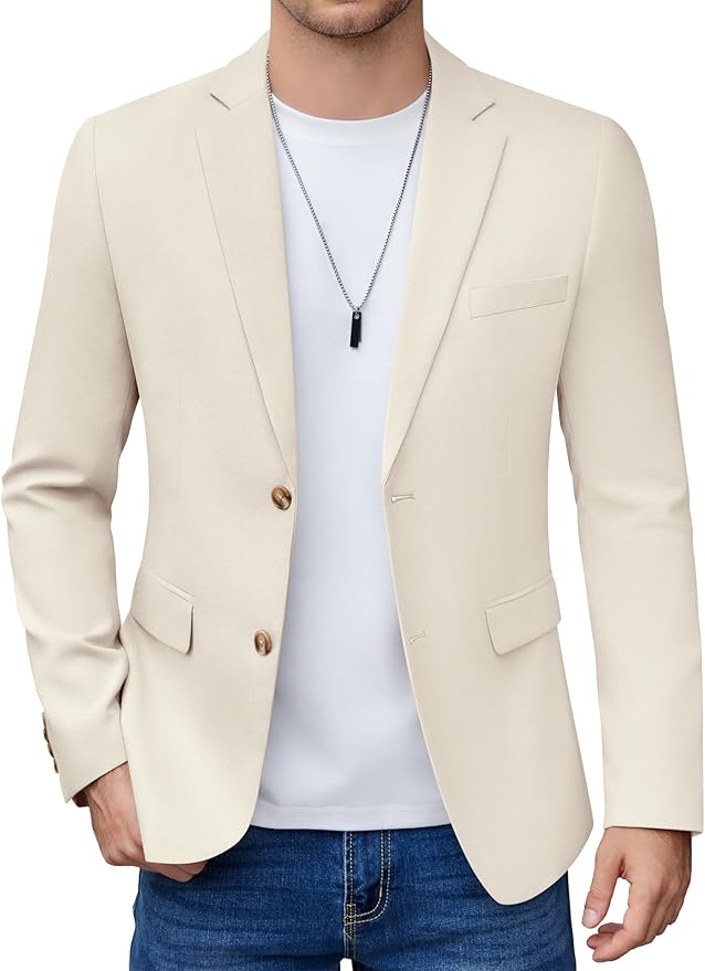 Men's Casual Linen Blazer Lightweight Sport Coat Two Button Suit Jackets