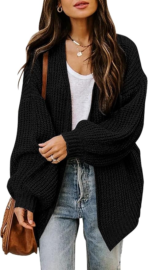 Women's Chunky Knit Open Front Sweater Long Lantern Sleeve