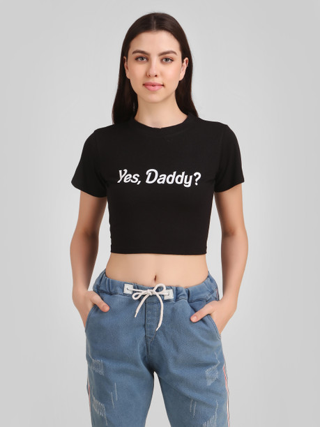 Women Printed Round Neck Polyester Yellow, White T-Shir...