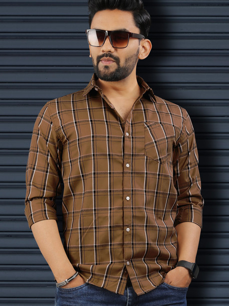 Men Regular Fit Checkered Spread Collar Casual Shirt